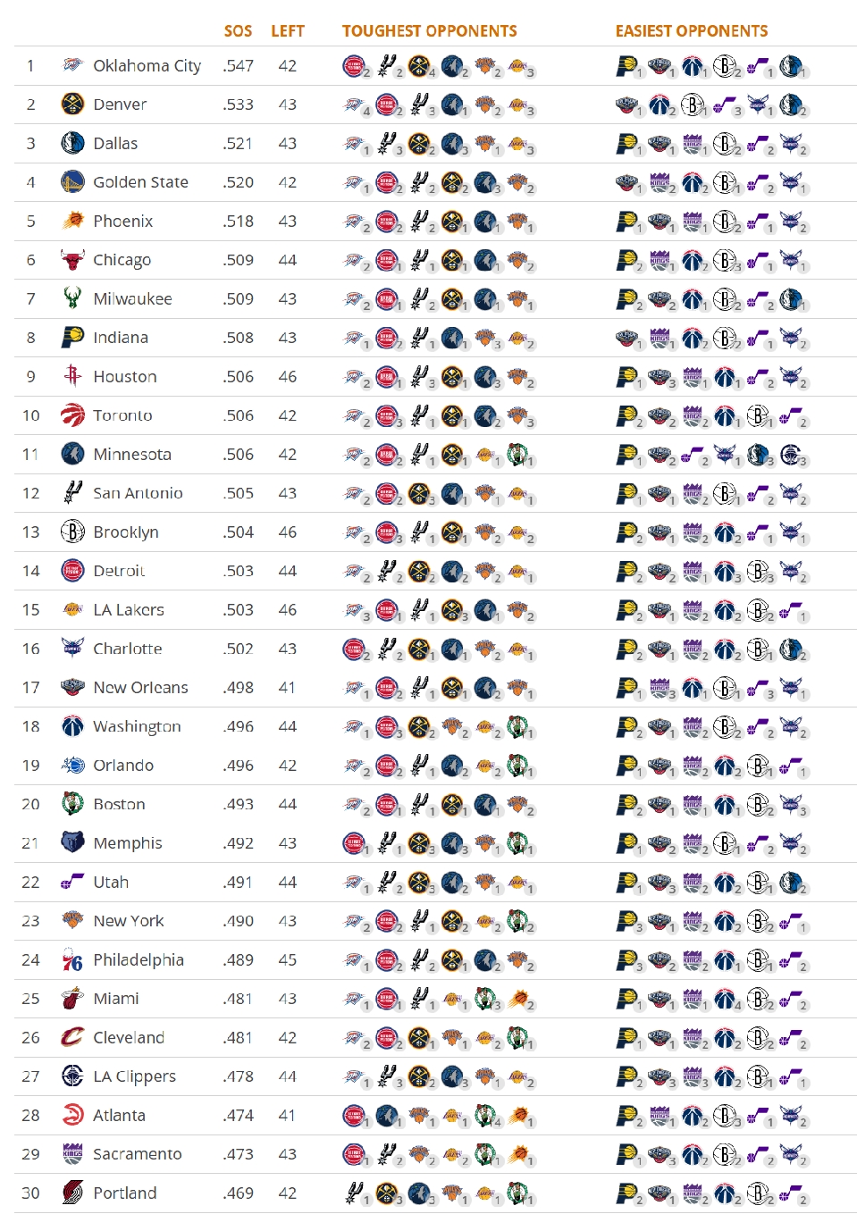 排名越高剩余赛程难度越高,排名越低剩余赛程难度越低!从左到右依次是:SOS:剩余对手的平均胜率;LEFT:剩余场数;最难打的对手罗列;最好打的对手罗列。...
